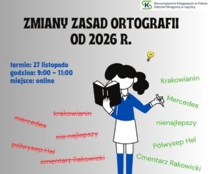 - podstawy prawne zmiany zasad ortografii, ogłoszonej 10 maja 2024 roku w komunikacie Rady Języka Polskiego, a wchodzącej w życie 1 stycznia 2026 roku.
